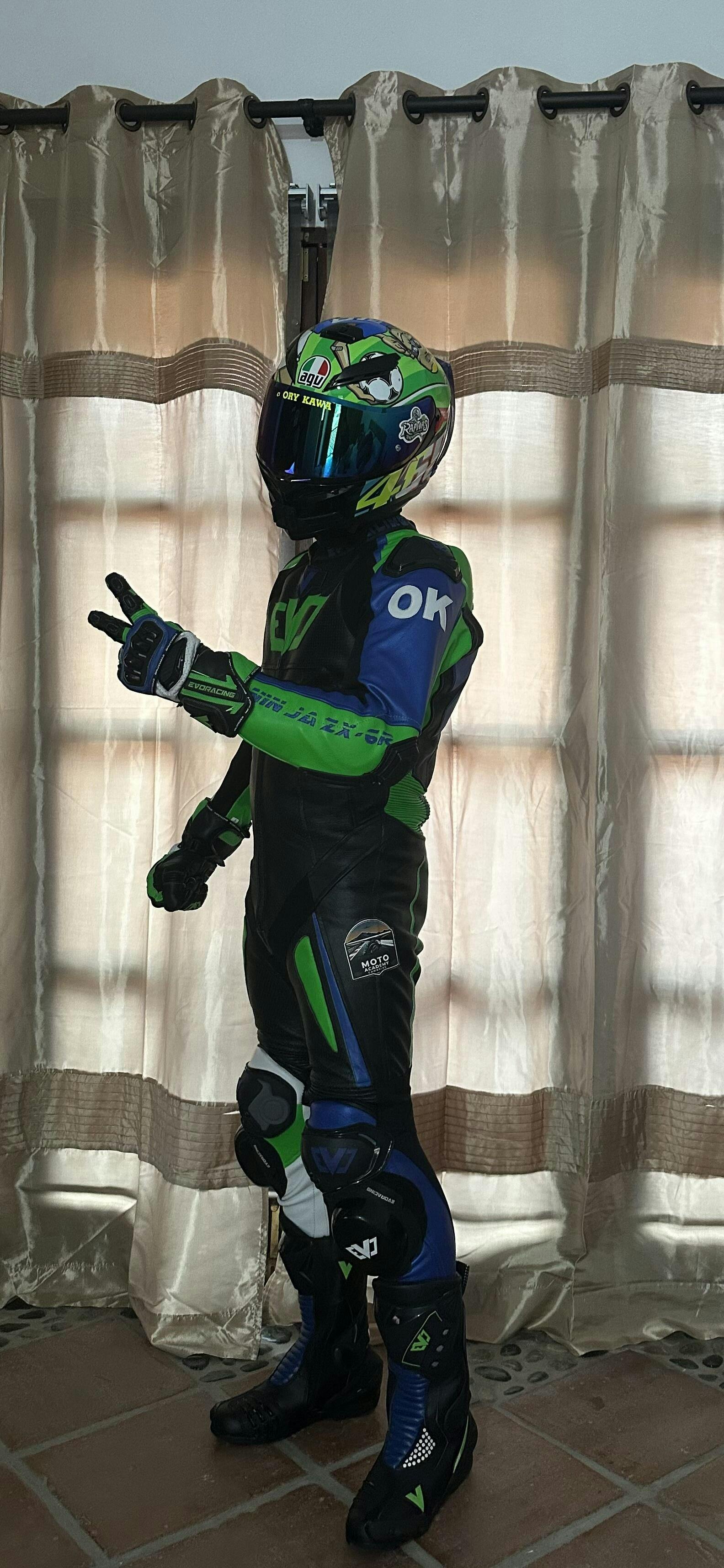 Con Evo encontré todo lo que buscaba. Color logos y comodidad. Me queda perfecto .. súper chulo y combina perfecto con mi moto y casco..